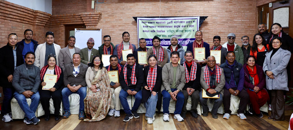 काठमाडौं, १७ माघ । सरकारले राष्ट्रिय सभामा दर्ता गराएको ‘सामाजिक सञ्जालको सञ्चालन प्रयोग तथा नियमन गर्ने सम्बन्धमा व्यवस्था गर्न बनेको विधेयक’ प्रेस तथा अभिव्यक्ति स्वतन्त्रता पक्षधरहरूलाई मान्य नहुने कुरामा वक्ताहरूले जोड़ दिनु भएको छ। नेपाल पत्रकार मञ्चले नेपाल पत्रकार महासंघको २७ औँ महाअधिवेशनमा निर्वाचित राष्ट्रिय परिषद सदस्य एवं प्रदेश परिषद सदस्यहरूलाई प्रमाण पत्र हस्तान्तरण गर्न आयोजित समारोहमा वक्ताहरूले त्यस्तो जोड़ दिनु भएको हो ।